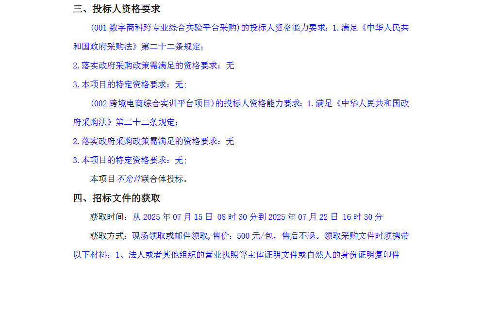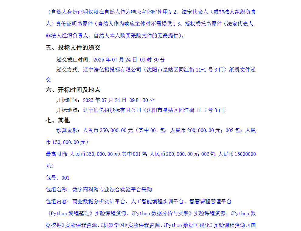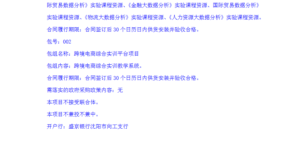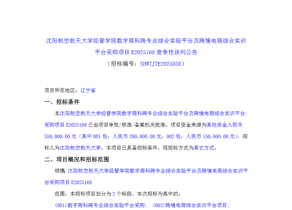 沈航经管学院数字商科跨专业综合实验平台及跨境电商综合实训平台采购项目E2025168采购公告(SHWTJTE2025038)