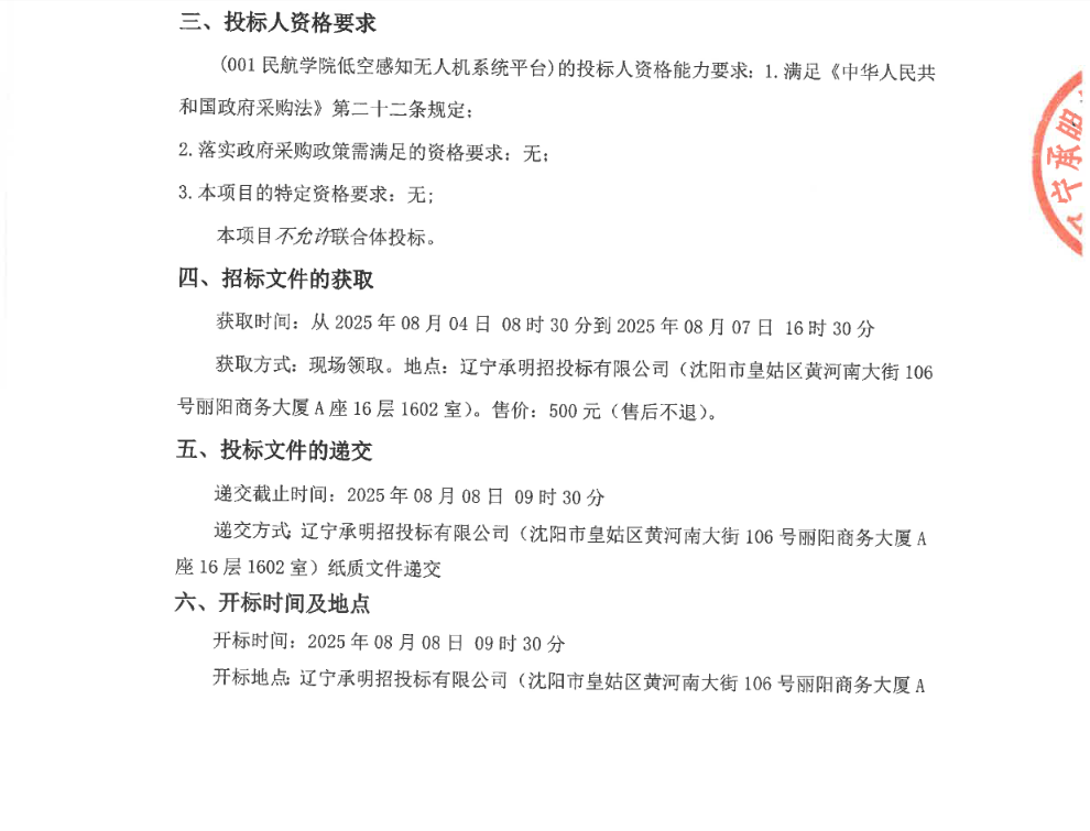 沈航民航学院低空感知无人机系统平台采购项目W2025175采购项目(SHWTJT2025042)