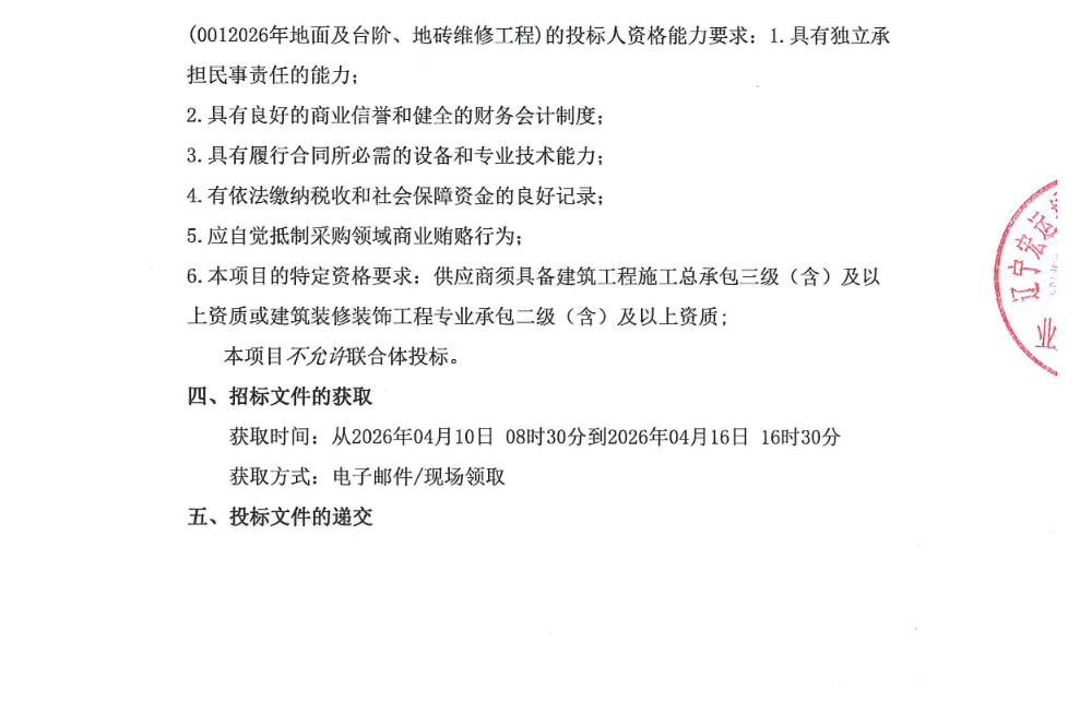 沈航2026年地面及台阶、地砖维修工程项目E2026034竞争性磋商公告(SHWTCSE2026014)