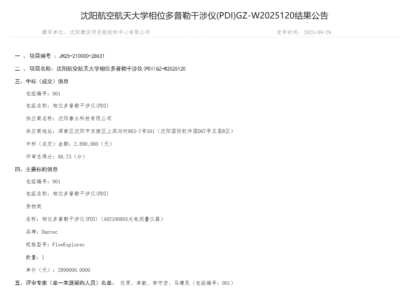 沈航相位多普勒干涉仪(PDI)GZ-W2025120结果公告(JH25-210000-28631)